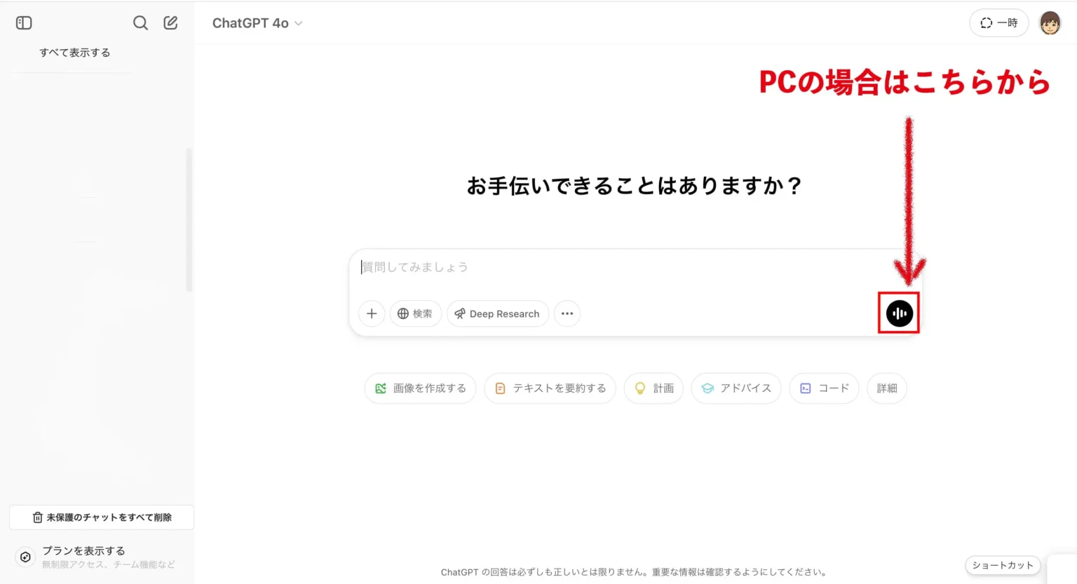 ChatGPTの音声機能を使うには、PCまたはスマートフォンのアプリで音声会話モードを有効にする必要があります。