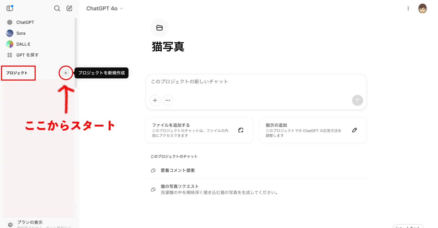 そんな悩みを解決するのが 「プロジェクト」機能 です!この機能を使えば、関連するチャットやファイルを一つのプロジェクトとして整理し、作業をスムーズに進めることができます。さらに、アップロードした資料を活用したり、カスタム指示を設定することで、ChatGPTをより効果的に使えるようになります。